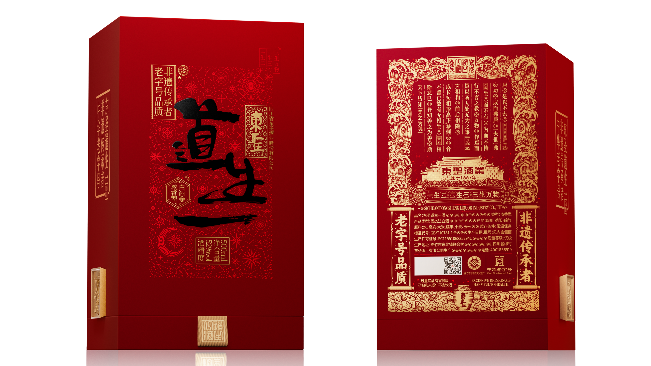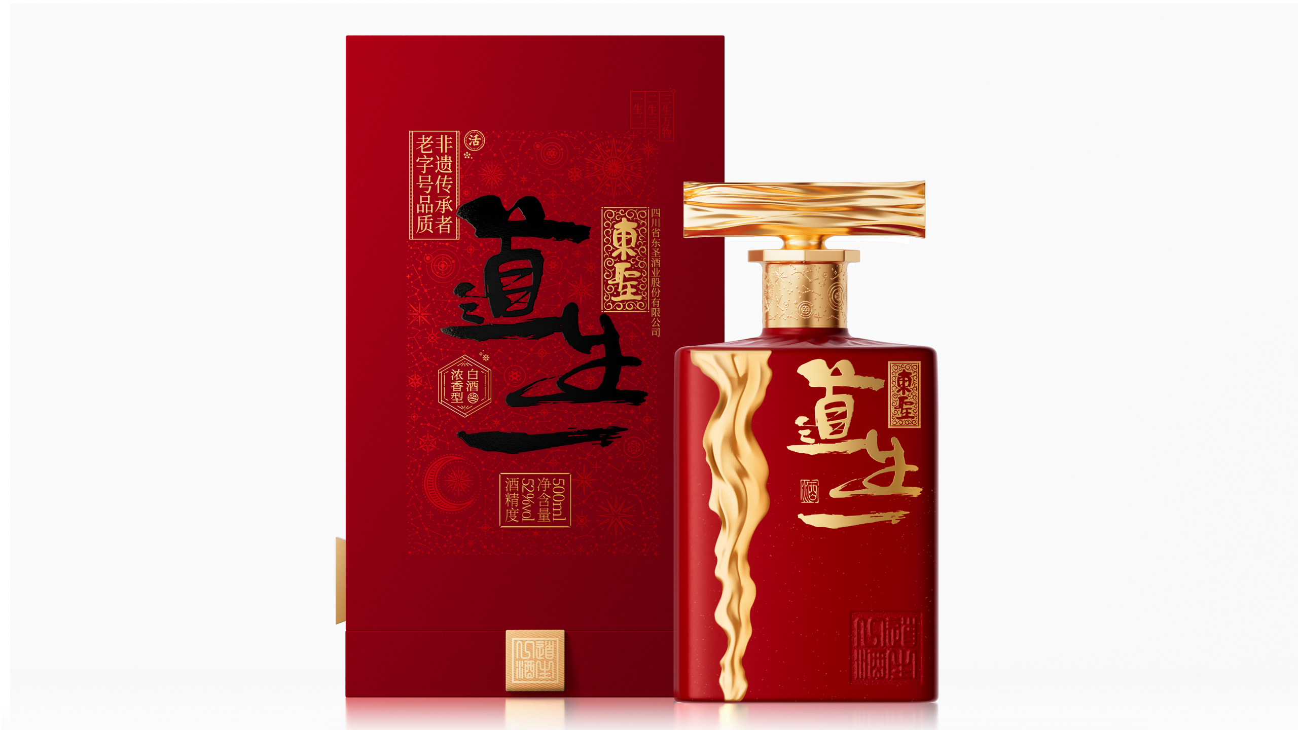 四川省东圣酒业股份有限公司位于中国美酒名城---德阳绵竹。品牌方十分注重酒文化的挖掘,力求美酒与文化的融合互通,推出的中华哲学文化酒一“东圣道生一”“年画”等系列酒,而这一次委托我们为其打造的,就是一款“道生一”系列中的高端产品。