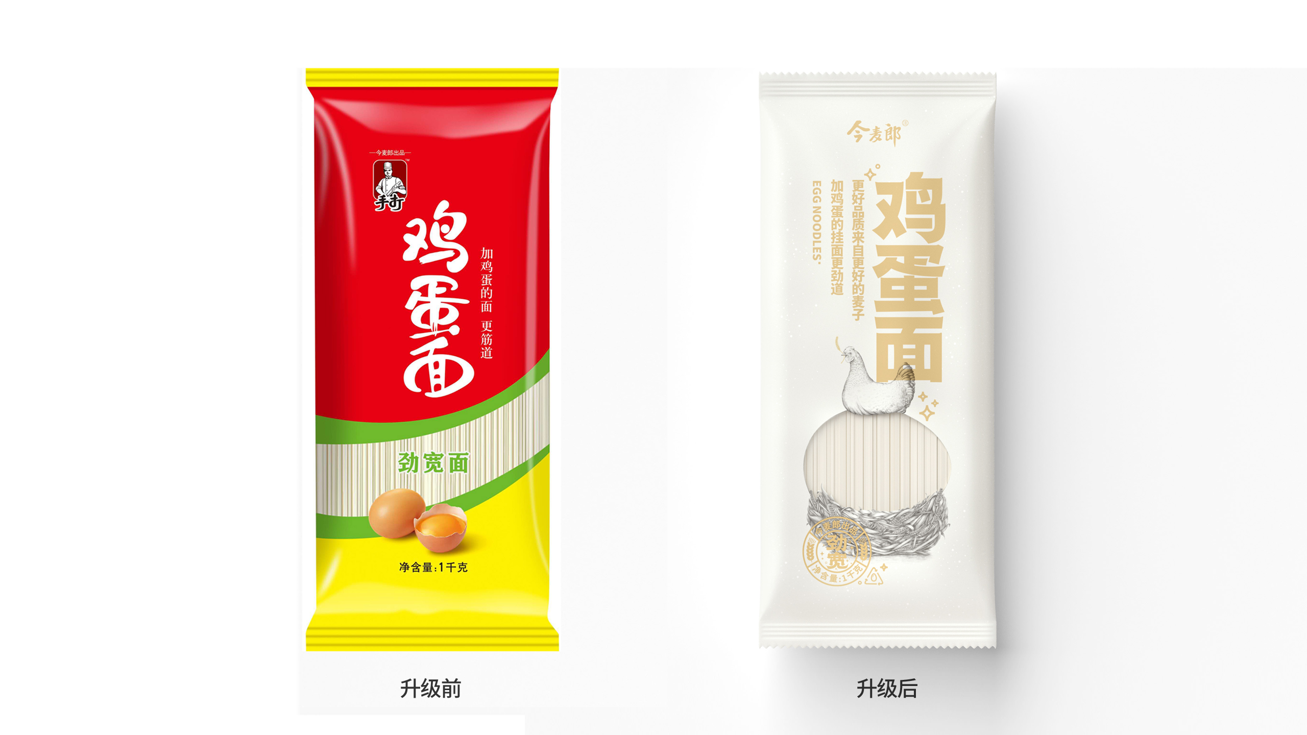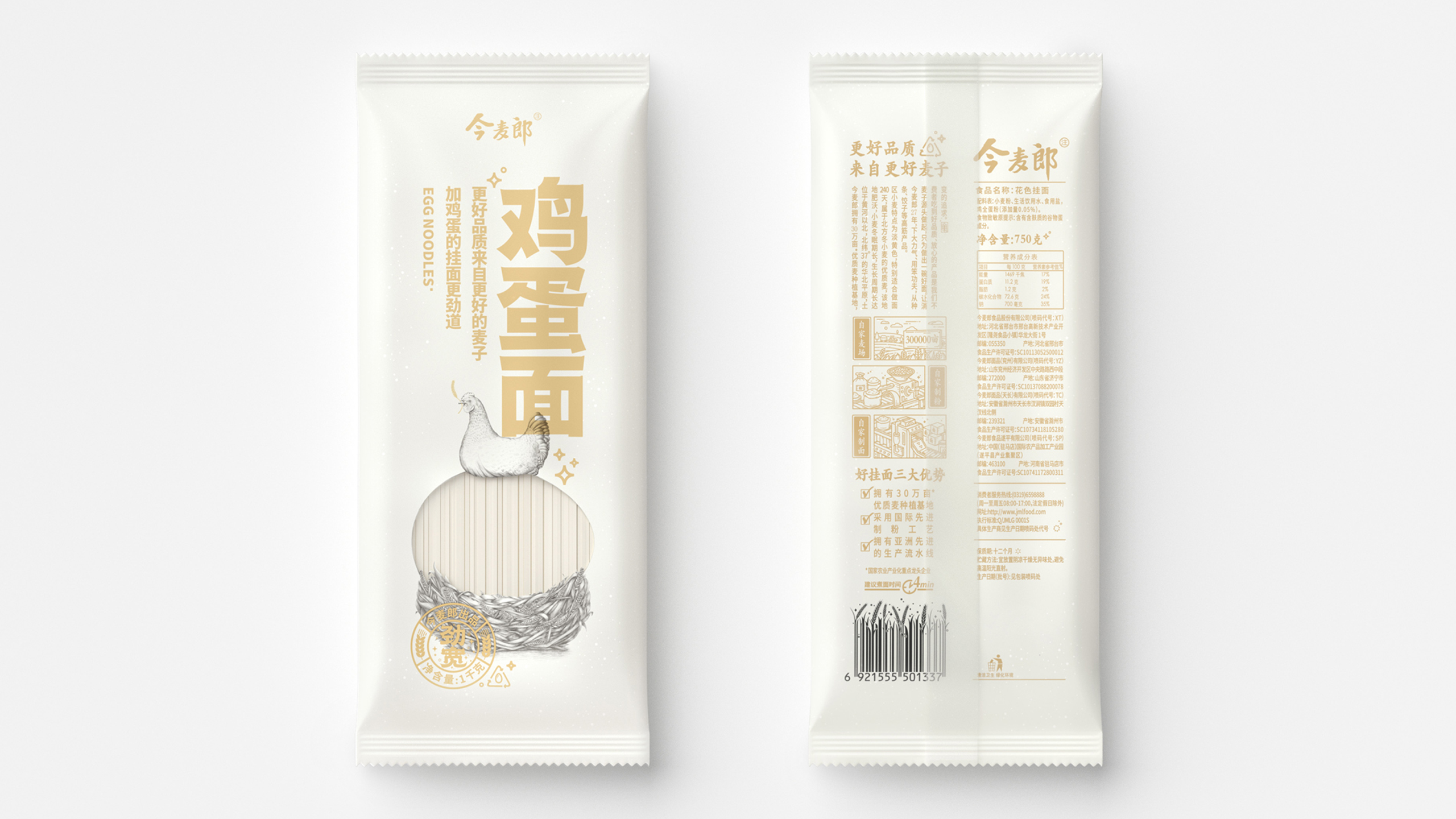 这款“今麦郎·鸡蛋面”顾名思义,面条在生产过程中有添加鸡蛋作为原料,以增强面条的韧性与营养价值。对于消费者而言,第一时间感知到原料中有鸡蛋,这一点很重要。